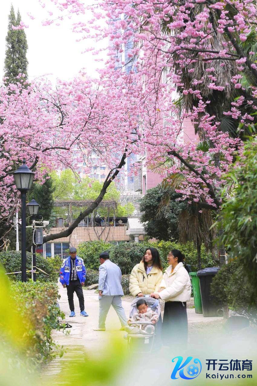 走进汉阳区鹦鹉花圃小区,春天就藏在住户楼下。几棵近30年的老樱花树已满枝盛放九游体育app娱乐,如云似霞,与淡粉色的外墙情投意合,酿成一派怜惜的"樱花瀑布"。这里莫得公园的距离感,唯有推窗即景的生涯气味——樱花就开在人烟气里,开在回家的路上。