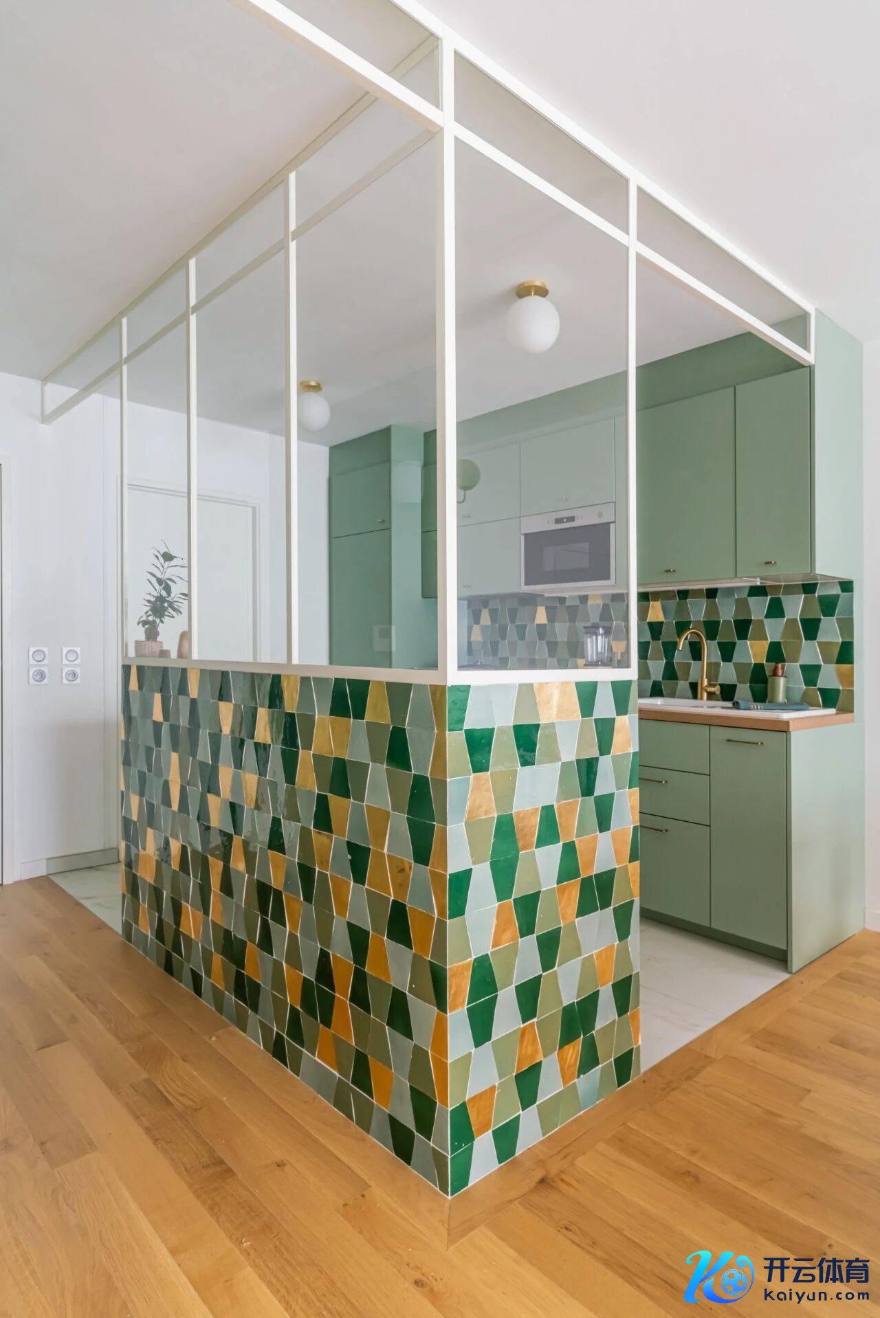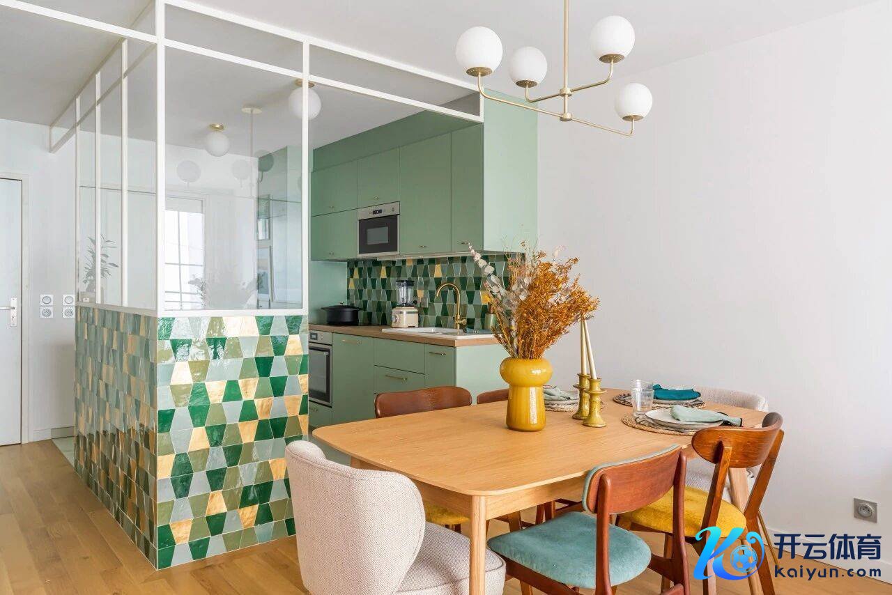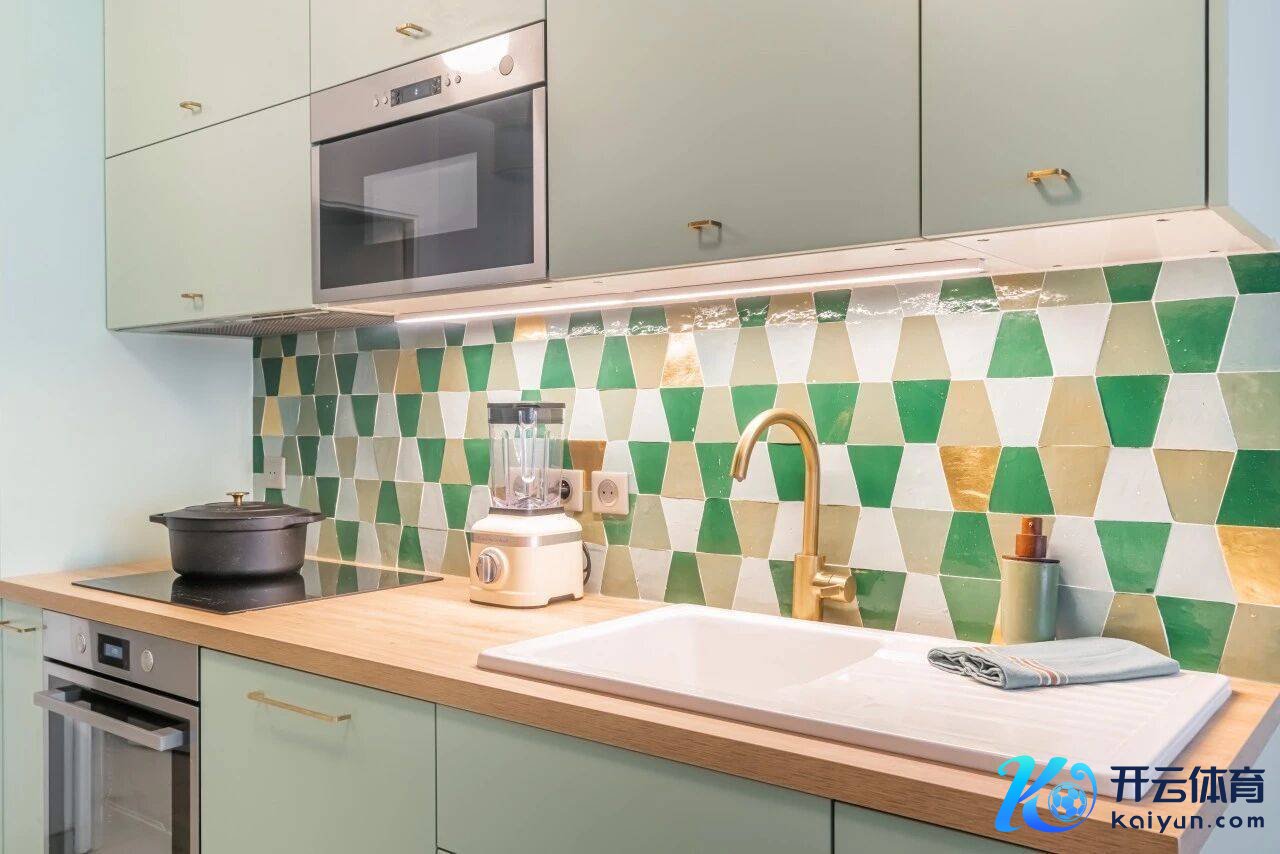 梦思中的杏仁绿色厨房,从本来仅3米长的一字型橱柜,奥妙无穷成为更契合东谈主体工程学且实用性更强的空间。